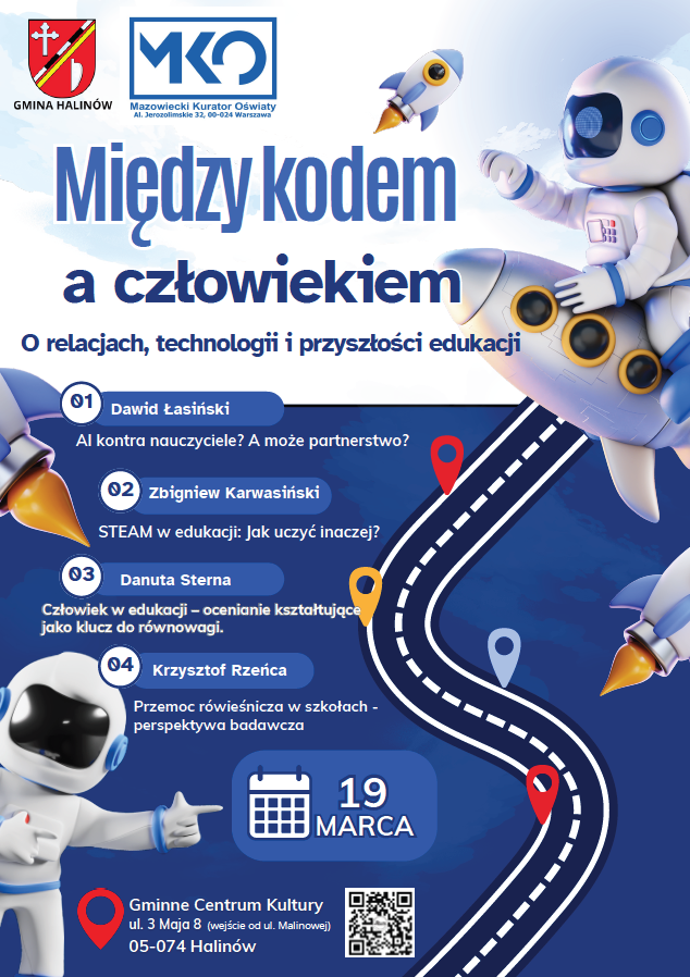 19 marca b.r., w Gminnym Centrum Kultury w Halinowie odbyła się wyjątkowa konferencja oświatowa pod patronatem Mazowieckiego Kuratora Oświaty pt. "Między kodem a człowiekiem. O relacjach, technologii
