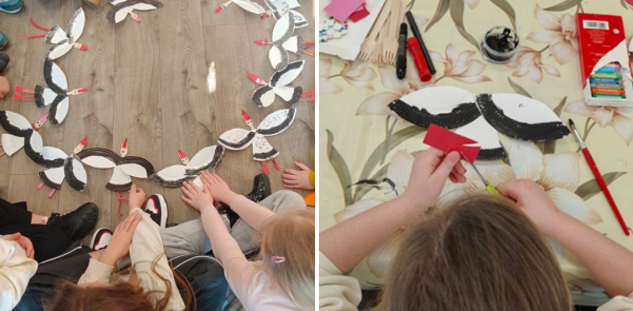 Wybrane klasy pierwsze z placówek oświatowych w Gminie miały okazję obejrzeć teatrzyk Kamishibai (forma narracji oparta na obrazach i słowie), w czasie którego przytoczono ciepłą i subtelną opowieść o miłosnej historii bocianów. Po przedstawieniu, dzieci wykazały się niezwykłą kreatywnością wycinając z papieru urocze boćki.