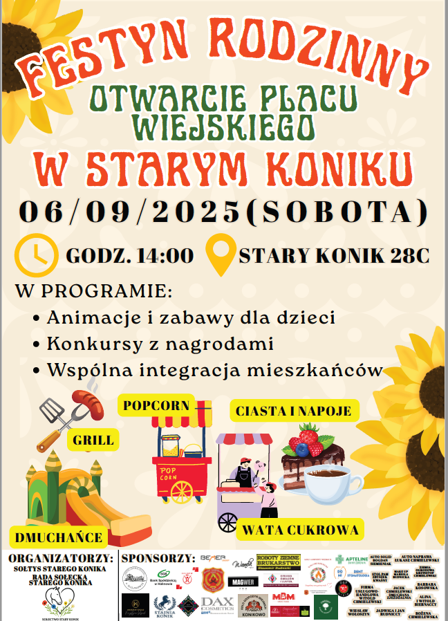 Serdecznie zapraszamy na Festyn Rodzinny w Starym Koniku i otwarcie placu wiejskiego!